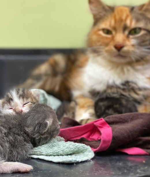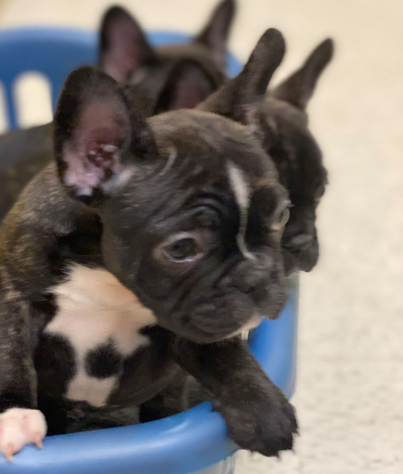 In addition to pre-partum wellness care to ensure healthy gestation, we can provide surgical cesarean section (c-section) for safe delivery. Cesarean section delivery is advised for brachycephalic breeds (e.g., French and English bulldogs, Boston terriers, pugs, Persians) as well as dogs or cats who have experienced whelping complications with previous litters. C-section delivery prevents potentially life-threatening distress to mother and litter and allows us to provide immediate attention (e.g., supplementary oxygen, stimulation, clear breathing passages) to neonates.